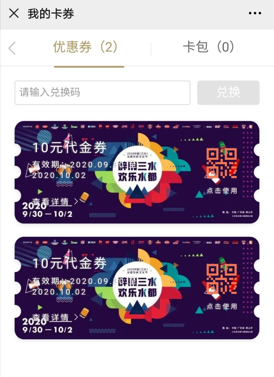用券范围为2020 中国(三水)水都饮料文化节取得消费券使用资格的商家。