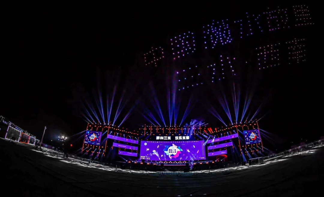 文化节期间喜逢国庆,主办方届时将特别安排一场无人机表演,当300余架无人机直上云霄,在夜空中瞬间变化成祝颂国家昌盛的字样,为祖国惊艳献礼!璀璨的灯光秀必将闪耀三水之美。