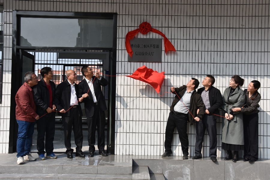 当天,芦苞镇委书记杨军、镇长黎锦标、镇人大主席张剑华、镇委副书记谢庆星、镇人大副主席郑立苹等共同为信访接待大厅揭牌。仪式结束后,杨军一行实地参观了信访接待大厅,听取了场室设置、人员配置、功能区管理运作等介绍。