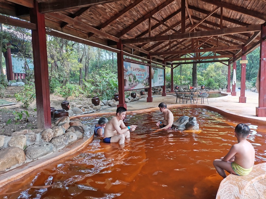 这里拥有丰富的地热资源,温泉水储量异常丰富,日出水量超4,200立方米,泉水清澈无味,出水温度达68摄氏度。经权威检测,芦苞温泉水属于国内稀有的“偏硅酸氡泉”,其泉水富含钙、镁、锌、硒、铁等多种有益矿物质微量元素,具有舒缓神经、改善睡眠、促进血液循环、增强新陈代谢、美容养生等功效。