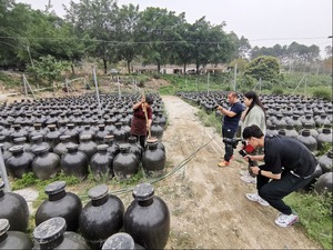 在芦苞镇西河村长四嫂农庄。摄制组们仔细地听“长四嫂”讲醋的故事,了解臭屁醋的历史,用镜头记录着人称“液体榴莲”的芦苞特色美食!