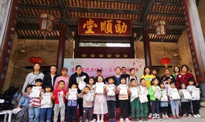 孝善文化的地位从蔡氏大宗祠在入口处设置“好人工作室”来看,更见一斑。蔡氏大宗祠“好人工作室”由芦苞镇区级道德模范蔡治定、蔡境华义务常驻,为村民提供义务咨询,向游客提供义务讲解服务。自从开设工作室以来,退休数年的蔡境华几乎每天往返奔波与西南的家与独树岗大宗祠之间。今天,他向到会的16对亲子家庭介绍起了独树岗的历史,并做了就“如何营造好家风”分享经验,引发了阵阵掌声。