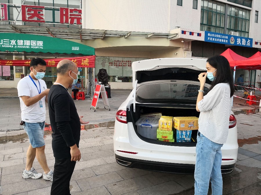芦苞市民李小姐为健翔医院采样点送来一批饮料