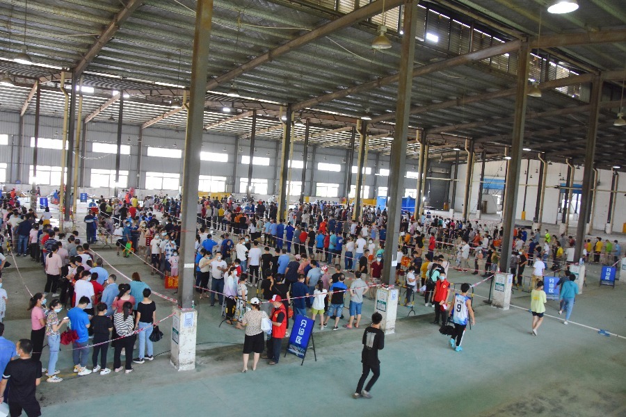 从接到通知到开展采样,不到15个小时。为了火速发动群众参与,芦苞镇干部下沉行政村、村小组一线,通过朋友圈、微信群转载“三水区将开展全民核酸检测”的信息。各村民小组长上门挨家挨户上门告知核酸检测信息,电话引导在外居住村民就近参与检测,实现100%传达率。在芦苞工业园区,芦苞镇职能部门包干到片,安排专员联系企业。每个企业就落实“2名专责人”,并以10人为单位组建小队,推选小队长,对接专员指导企业员工做好信息预录工作。