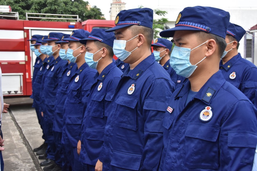 专职消防队员正在训练