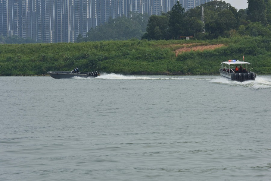 水上巡防是水警中队的主要职责之一。“我们采用‘全水域+重点水域’相结合巡逻模式,对河道入口、河道汇流口及研判出的转运易上岸点的滩涂等部位进行重点关注,部分季节性河道视水情启动动态水上巡逻。”水警中队负责人章鹏介绍说,“巡逻期间发现岸边有大量包装袋,或者推土机推出道路痕迹等现象,均为走私活动可疑点,队员会进行标注并及时通报辖区派出所开展进一步侦查和处理。”