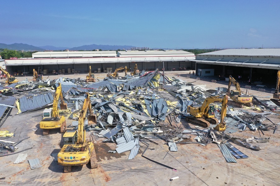 10月11日上午,联合执法组委派施工队,对当事人未办理建设工程规划许可证的违法建设实施强制拆除,并聘请公证处公证人员对强拆现场进行全程公证。在清理现场无关人员、确保安全得以保障后,由施工机械进场对该批未完善报建(构)手续的建筑物实施拆除。最终,经过连续作业,该批违法建筑被顺利拆除。