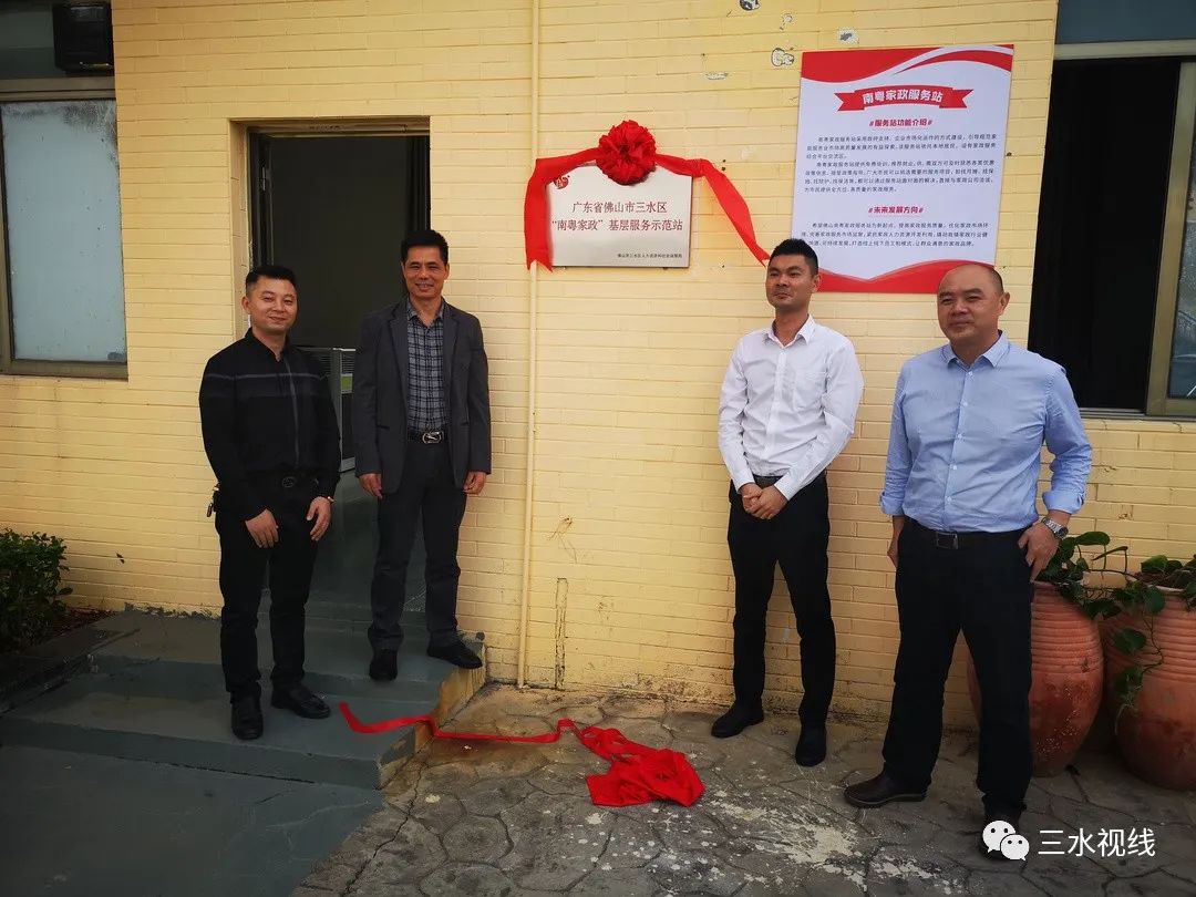 2021年11月18日上午,三水区人社局在白坭镇人才服务专区举办“南粤家政”基层服务示范站挂牌仪式,区人社局副局长陆英华、白坭镇副镇长梁志鹏等共同为示范站揭牌。与此同时,三水区其他6个镇(街道)也进行了“南粤家政”基层服务示范站挂牌。前期在区人社局的指导下,各镇(街道)充分依托党群服务中心、基层公共就业服务平台等社区各类公共服务载体、员工制家政企业服务网点,均相继建设“南粤家政”基层服务示范站,这标志着三水区南粤家政服务将充分延伸到每个镇(街道),进一步推动“南粤家政工程”高质量发展。