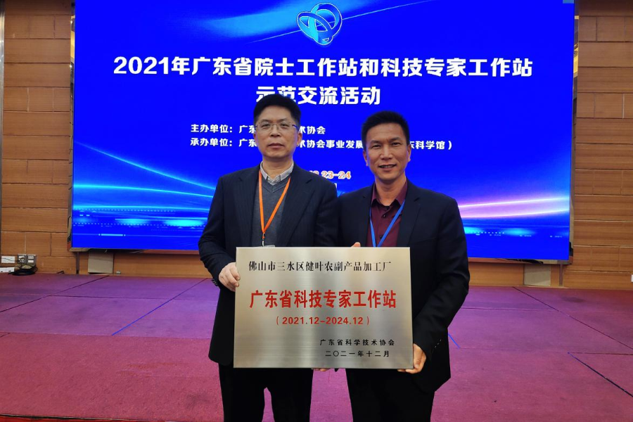 12月23日,广东省院士工作站和广东省科技专家工作站示范交流活动在广州举行,现场公布《广东省科技专家工作站建站单位名单(2021-2024)》。芦苞健叶农副产品加工厂位列其中,获批建立“广东省科技专家工作站”。据悉,本次共有47家单位获批建立“广东省科技专家工作站”,其中佛山市4家,芦苞健叶农副产品加工厂是三水唯一一家。