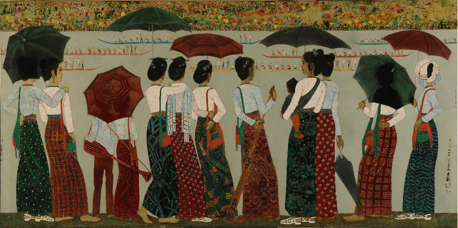 泼水节,180x2250px,2008-2009年,大漆,乔十光