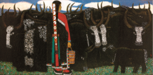 青藏高原,180x2250px,1984年,大漆,乔十光