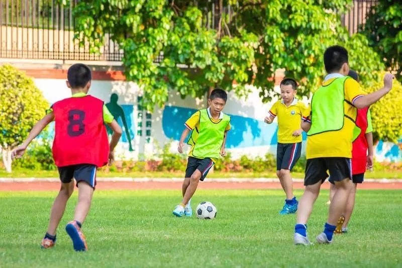 三水区西南街道北江小学足球场上,校足球队的同学们踢足球。佛山日报记者王澍摄