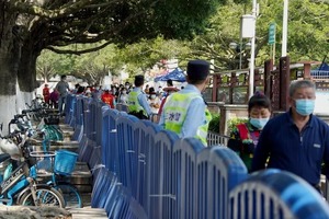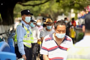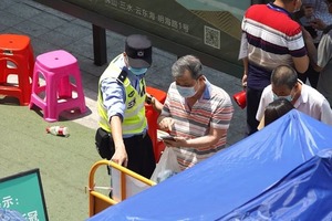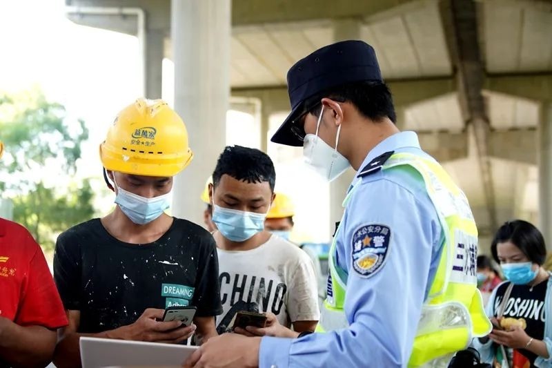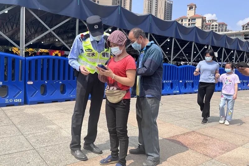 维持现场秩序的声音穿插在检测的队伍中,为了能够加快核酸检测的速度,现场警辅人员站上抗疫第一线,一边提醒群众拉开防疫间距,另一方面指引群众提前填写资料,生成“粤核酸码”,加快检测速度。