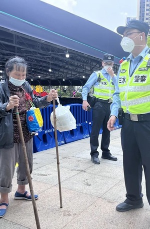 在中旅社核酸采样点,民警接到一名老婆婆求助,该老婆婆和一名朋友不慎分开,自己迷失方向,找不到回家的路。在民警帮助下,联系上其儿子,并安全回家。