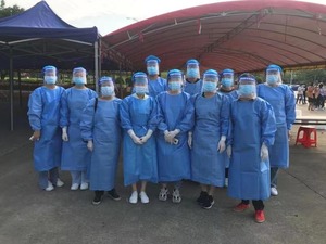 核酸检测一直持续到晚上8点,全天完成核酸采样17000余人,不少志愿者从换上工作服开始就没停过,甚至工作四五个小时,中途一口水都顾不上喝。