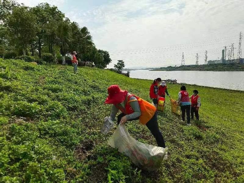三水区杰出志愿者、芦苞镇独树岗志愿服务队队长蔡桂广见到这一幕,马上组织芦苞青年志愿者开展“美丽芦苞,志愿有我”公园洁净活动,重点对河滩边、树丛下、休闲道上的塑料袋、废纸巾及烟头等生活垃圾进行清理。他们手持钳子,拿着垃圾袋,分工合作、互相配合,将散落在河岸和花海公园周边的白色垃圾、纸皮果馅等捡起并收集存放到垃圾袋内,以便进行集中处理。
