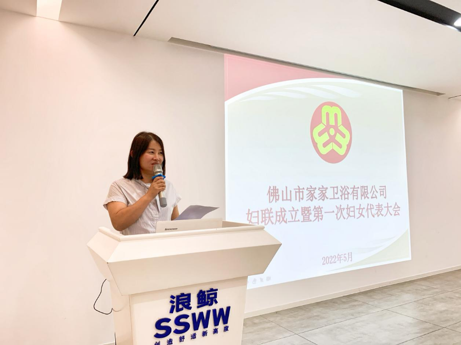 新当选妇联主席王兰芬同志作表态发言,佛山市家家卫浴有限公司妇联会将紧紧围绕上级党组织和妇联的要求,在全体执委成员的齐心协力,结合公司实际,摸清公司女性的工作生活需求,为女职工在婚姻家庭、文化教育、心理健康等方面提供更多更好的服务,一定能够在任期内更好地团结家家卫浴妇女群体的力量,共建共享,营造积极向上的巾帼形象。将妇联的各项工作落到实处,努力打造有品质、有温度、有情感、有凝聚力的“妇女之家”。