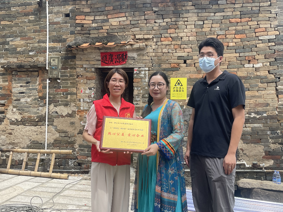 ▲镇妇联向区建协赠送爱心企业牌匾。