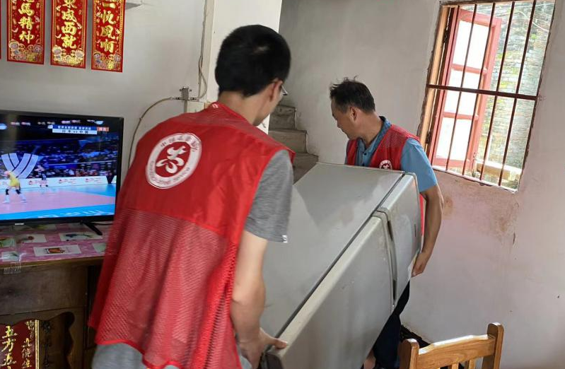 党员干部、志愿者帮助渔民把渔船搬上岸