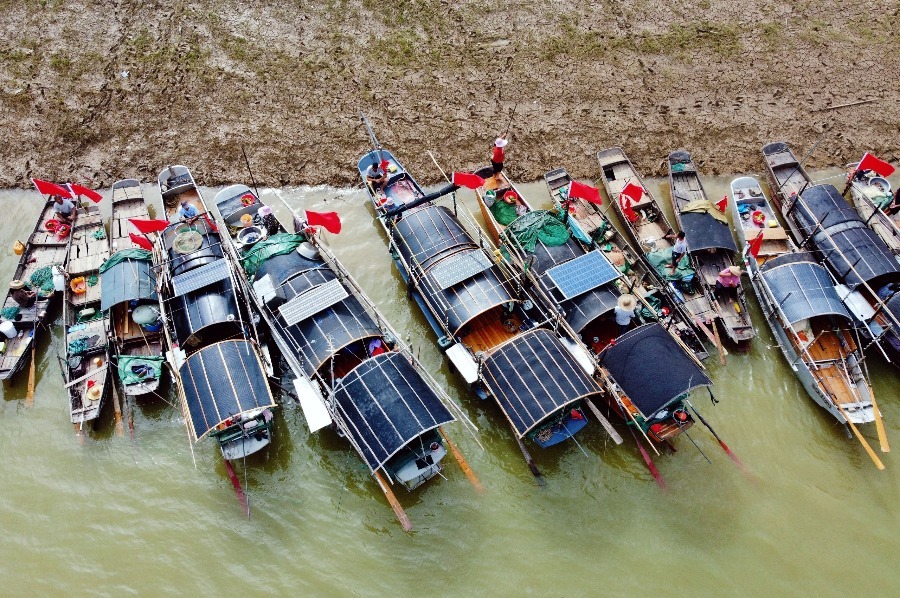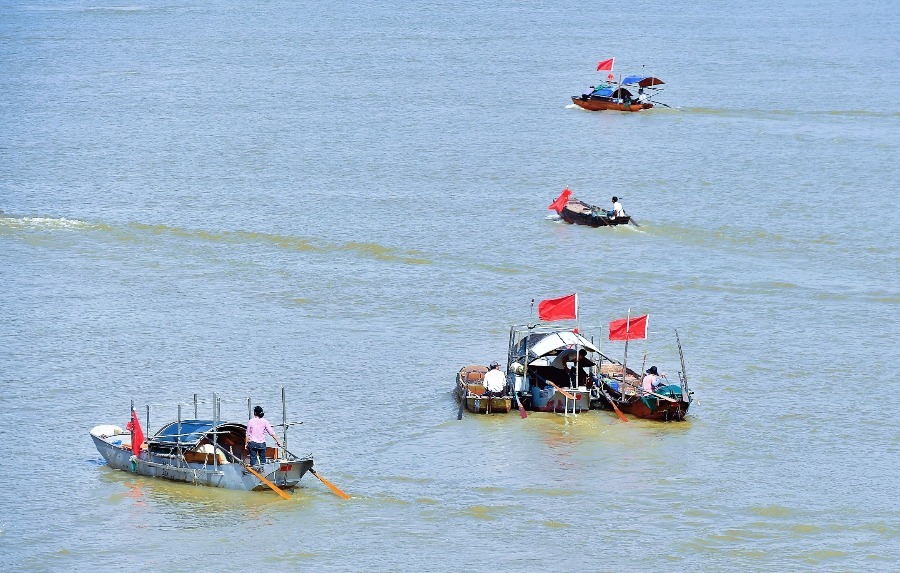西江边上的渔民,出发打捞河鲜。李华键/摄