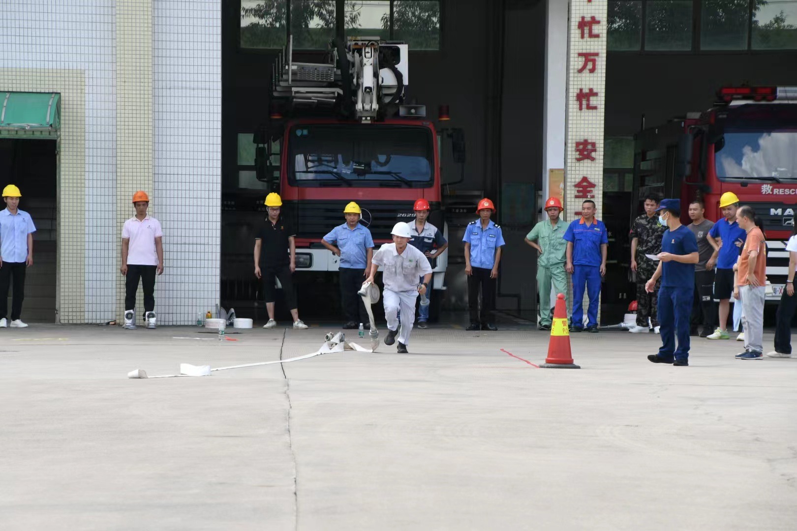 参赛队伍主要来自大塘镇的15家企业共75名职工,行业涉及纺织、印染、化工、五金等。三水区总工会二级主任科员黄建国、大塘镇总工会专职副主席陈健昌、大塘镇消防救援所所长罗志彬、大塘镇总工会兼职副主席江剑洪、大塘镇总工会兼职副主席王菊方出席竞赛现场。竞赛启动前陈健昌和罗志彬分别作了动员讲话,叮嘱各参赛队伍珍惜本次培训和竞赛的机会,努力争先,认真学习更多消防理论知识,为企业排除消防隐患。