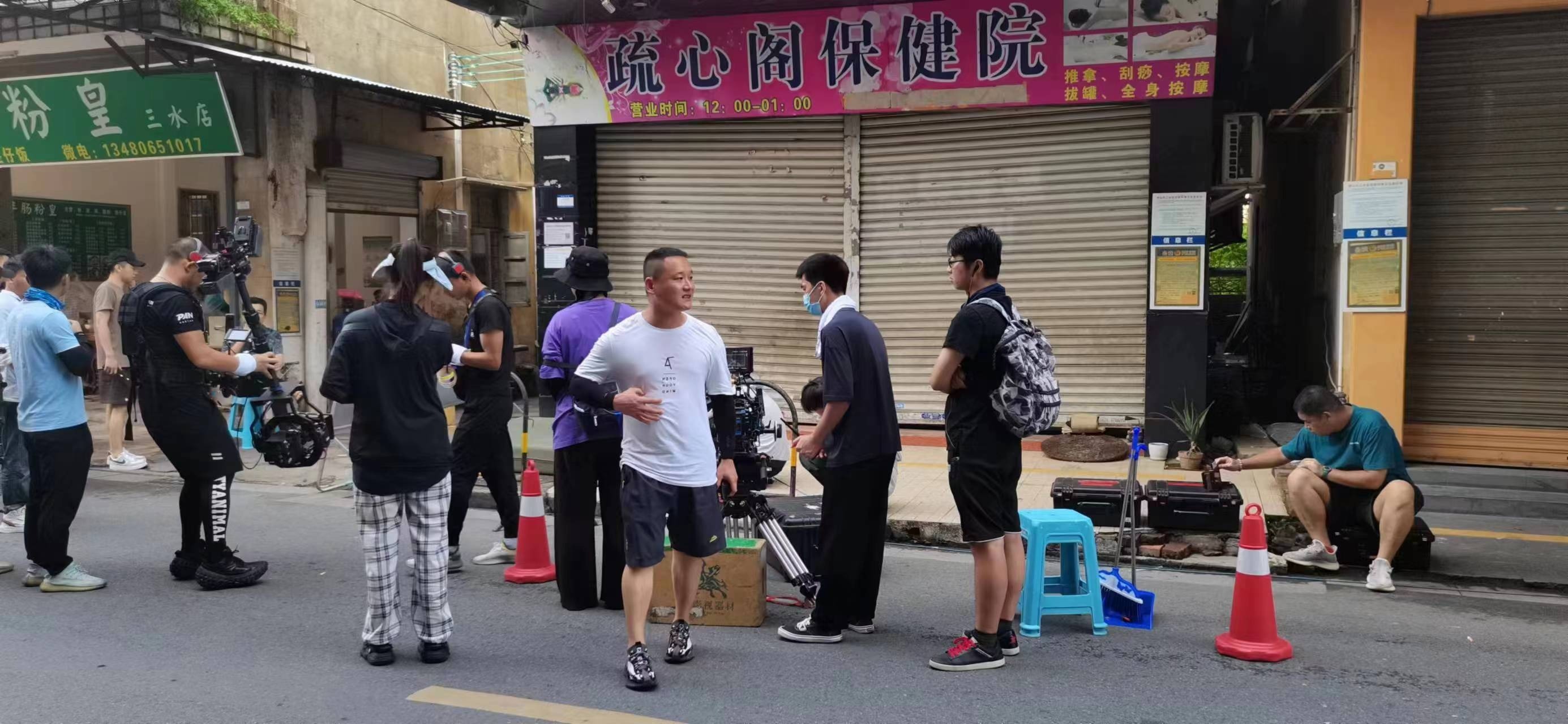 “芦苞政府的支持非常给力,有问题第一时间推动落实,第一时间协助解决”,导演方向表示。院线电影画质要求高、画面设计精美、演员动作复杂。为了确保质量,剧组拍摄启动了较大的拍摄阵仗,并采用了威亚吊车等大型动作辅助设备。为了协助完成拍摄任务,芦苞社区居委派出人手,协助剧组沟通落实场地。芦苞交警中队通知车主挪车,并到场指引。镇综合执法办将车辆给予剧组使用。芦苞同方医院更是腾挪出独立区域供剧组使用。电影的拍摄,还得到了沿途芦苞街坊大力支持。有的店家主动为剧组拍摄用电提供方便,有的将自家建筑提供给剧组使用,还有的商家为剧组端茶送水。8月22日晚十一点多,为了营造晚上八九点钟的氛围,许多店家主动配合剧组延长营业时间,彰显了芦苞的人文温度。