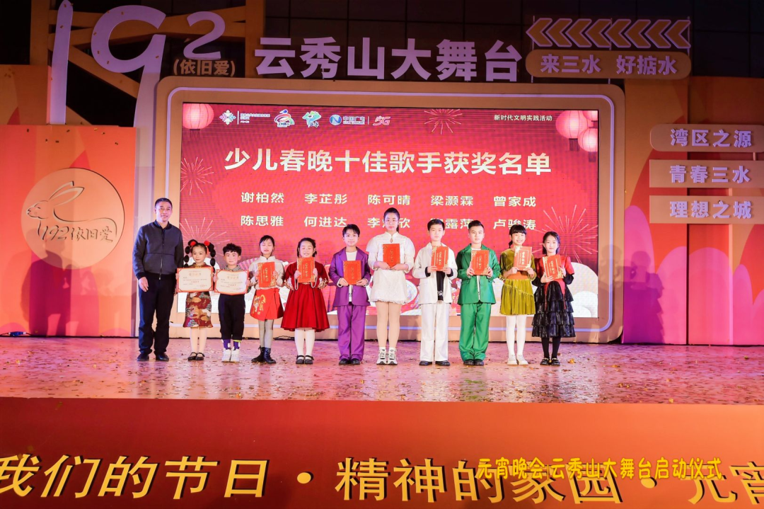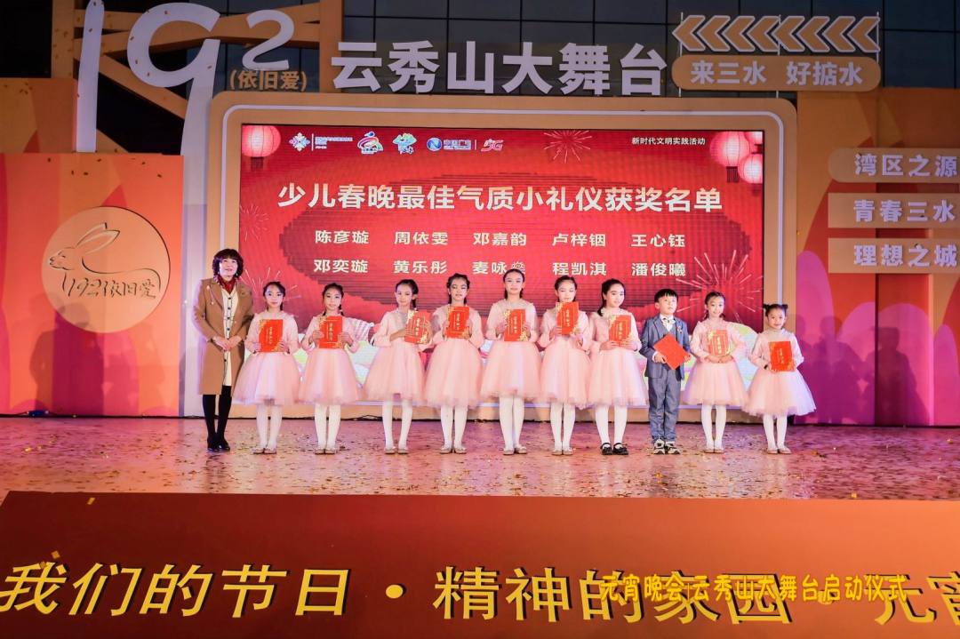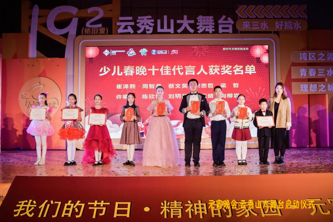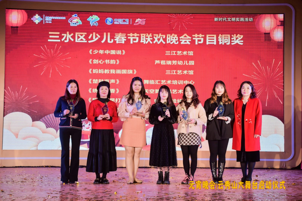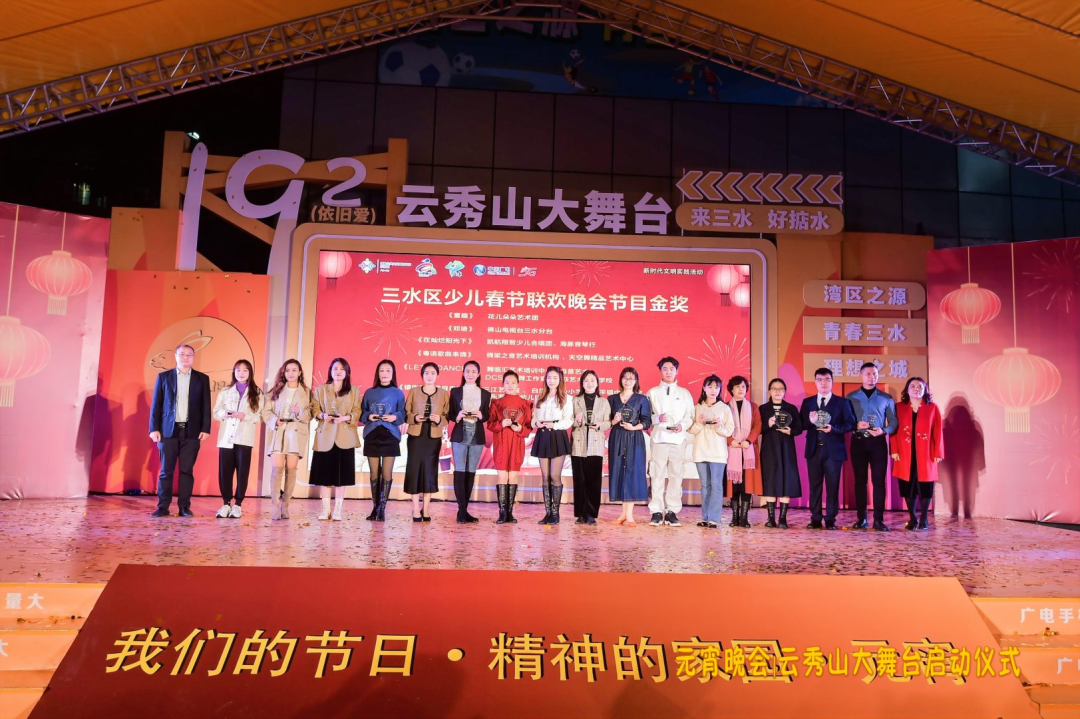 本次活动的表演嘉宾全部来自“淼城文艺轻骑兵”,这是一支由文联下属各协会成员、区内热心企业、热心艺术培训机构、各类社会艺术人才及淼城之声合唱团、淼粉舞蹈团、少儿艺术团等团体联合组建的志愿队伍,除了会参与“云秀山大舞台”演出外,还将加入公益艺术培训品牌“淼城夜校”的共建共享。目前,已明确可以提供公益课程12次以上或参加云秀山大舞台表演5次以上的机构共52个,个人62人,所有参加的机构或个人全部是自愿参加、志愿形式,充分激发了公共文化服务的活性。活动为“淼城文艺轻骑兵”的机构、个人代表进行了颁牌仪式,并对三水少儿春晚获奖演员、组织进行了颁奖。