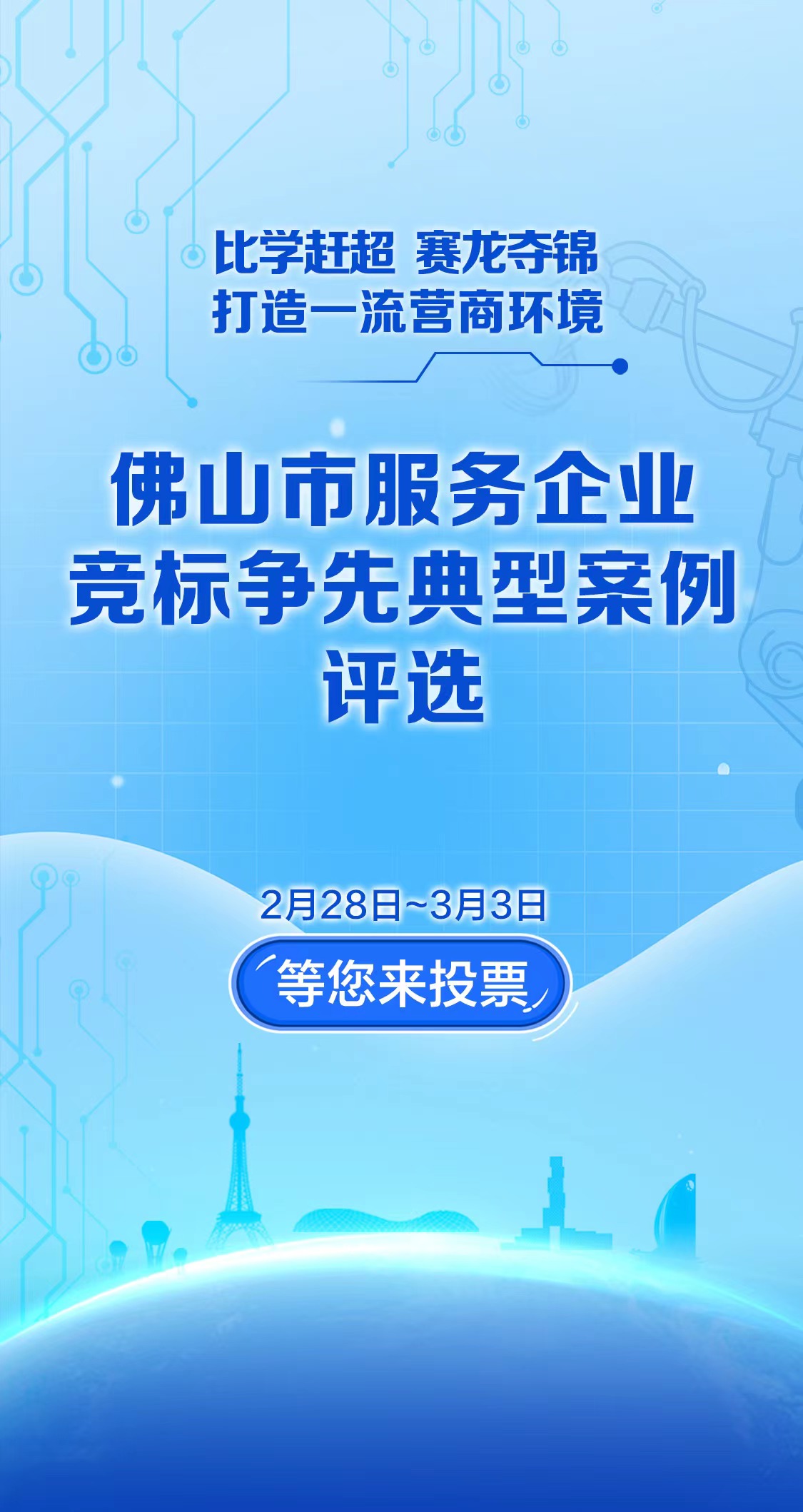 佛山日报讯 记者倪玉洁报道:比学赶超,争创一流!2月28日至3月3日,佛山市服务企业竞标争先典型案例评选正式进入投票环节,欢迎大家通过佛山+客户端、佛山发布等平台通道参与点赞。
