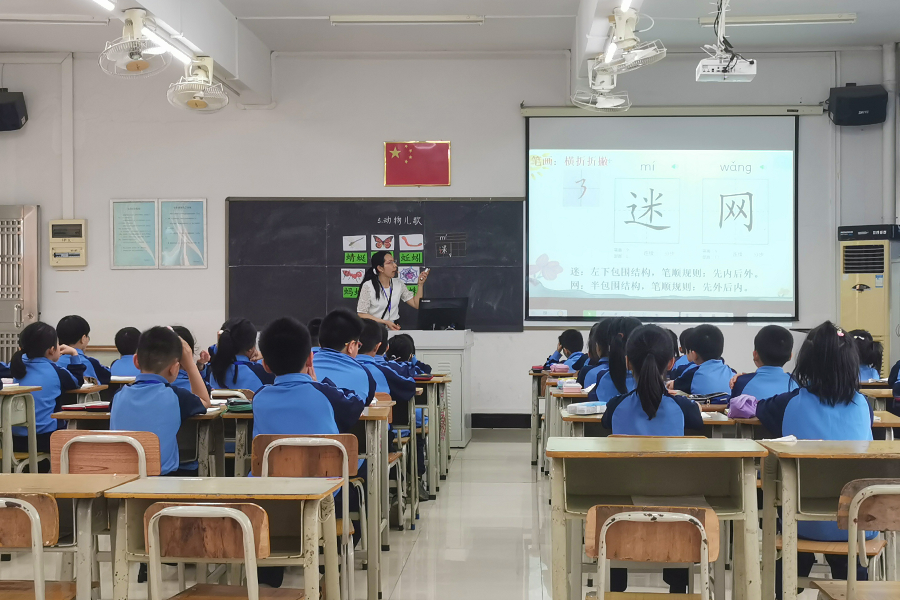 “兴趣是最好的老师”。岑沛英师执教的识字课《动物儿童歌》,借助猜谜语、图片等素材,运用归类识字、形声字识字、看图识字等多种识字方法,充分激发孩子们的识字兴趣,在有效完成识字目标的同时,提升了孩子们的语文素养。写好字,做好人,书写的是一种品格。而在书写指导上,她稳扎稳打,细致讲解示范“蝴蝶”“蜻蜓”两字的写法,及时提示、检查、评价和激励。