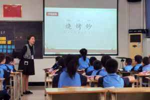 生活中识字,识字中生活。杨静老师为大家呈现了一节珍馐美馔——《中国美食》。从《舌尖上的中国》视频、精美的美食图片开始,到食材的认识到美食的烹饪方法的了解,孩子们能一边欣赏美食,一边习得生字。这种大道至简的教学方法,拓宽了识字途径,让孩子们学会在生活中识字。这节“美食盛宴”,可谓寓教于乐、教学相长、其乐融融。