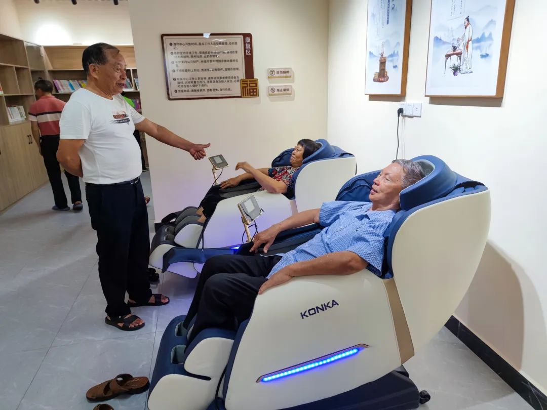 “这个按摩椅很好,按得很舒服,以后会经常过来按摩放松。”“这里提供免费剪发服务,为我们长者解决了’头’等大事,剪完头感觉人都精神多了!”“这里环境很好,设备设施又齐全”......芦苞镇综合性社区养老服务中心舒适的环境、丰富的硬件设施、暖心的服务,让长者们称赞不绝。