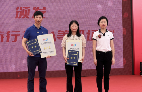 活动还向2家获评广东省3A级旅行社的佛山市天下游国际旅行社有限公司和佛山市三水中旅集团有限公司颁发了证书和牌匾,为区民政局婚姻登记处颁发了2022年度广东省“巾帼文明岗”牌匾。