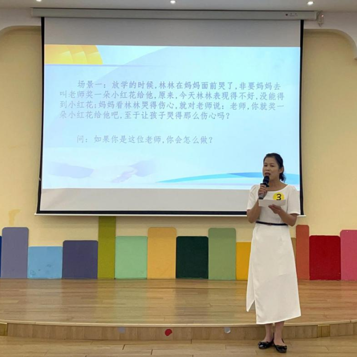 说课环节中,老师们个个精神饱满,围绕教学主题,结合幼儿年龄特点及自身教育经验,依据《幼儿园教育指导纲要》和《3-6岁儿童学习与发展指南》的精神设计活动,分别从教材分析、重难点目标分析、活动准备、说教法学法、说活动过程及说特色等方面进行细致的阐述。老师们匠心独具,风采各异,她们用精炼的语言、精美的课件诠释了自己对教材的独特理解,从不同的角度演绎了不一样的说课风格,充分展示了教师们的教学专业实力。