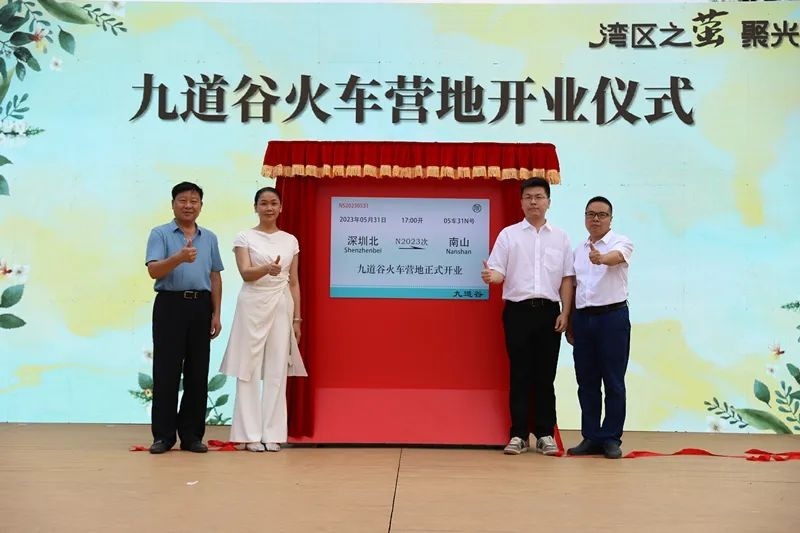 △ 领导嘉宾共同放飞启动箱里的气球,启动“湾区之萤 聚光南山”2023 年三水区南山镇森林欢乐节暨九道谷“奇幻森林”首届萤火虫旅游节。“为配合今年观萤季,九道谷推出了首届萤火虫旅游节。”九道谷景区总经理刘庞煜介绍,为了办好本次活动,九道谷充分整合特色项目资源,推出了九道谷萤火虫旅游线路,提升观萤体验。不仅如此,在启动仪式现场还举行了九道谷火车营地开业仪式,旨在将萤火虫“浪漫”“唯美”“生态”的景区特质呈现的同时,给广大游客带来更美好的游览体验。