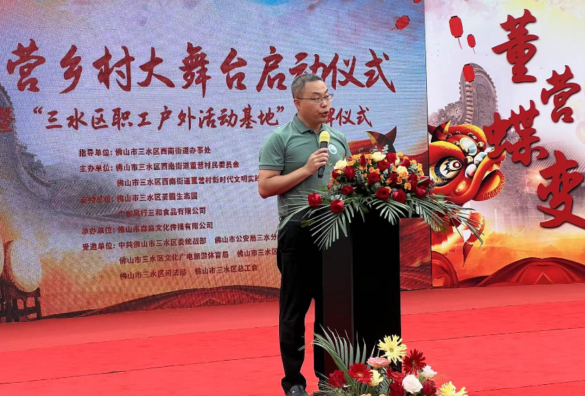 西南街道党工委副书记办事处主任 徐仲辉代表西南街道党工委、办事处对董营乡村大舞台启动和“三水区职工户外活动基地”授牌表示热烈的祝贺,对一直以来关心、支持西南街道发展的各位领导、嘉宾、村民表示衷心的感谢。