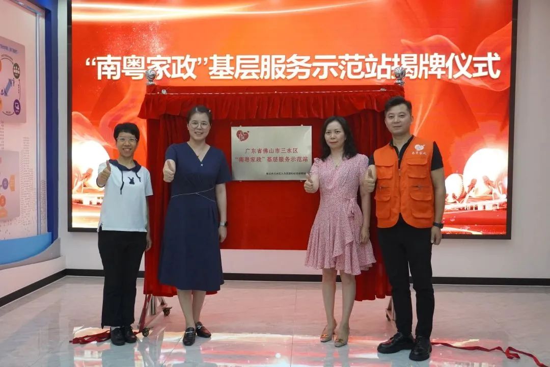 为积极落实省、市“南粤家政”工程工作部署,推进“南粤家政”基层服务站建设,近日,三水区桥头社区、三水区芦苞镇、三水区乐平镇“南粤家政”基层服务站正式揭牌启用。三水区人力资源和社会保障局副局长黄丽琼、三水区人力资源和社会保障局培训就业股股长曾广根股长、三水区西南街道公共服务办温笑瑜主任、三水区西南街道桥头居委会刘燕桃书记、三水区芦首镇党委委员余高红、三水区乐平镇党委委员李家杰、三水区乐平镇公共服务办公室主任邓志豪、佛山市广粤家政服务有限公司负责人全学龙参加仪式,并为桥头社区、芦苞镇、乐平镇三个服务站进行揭牌。