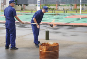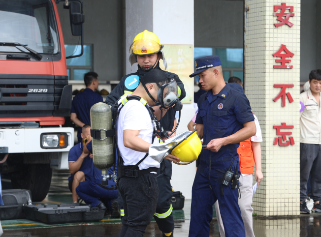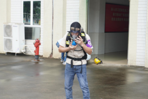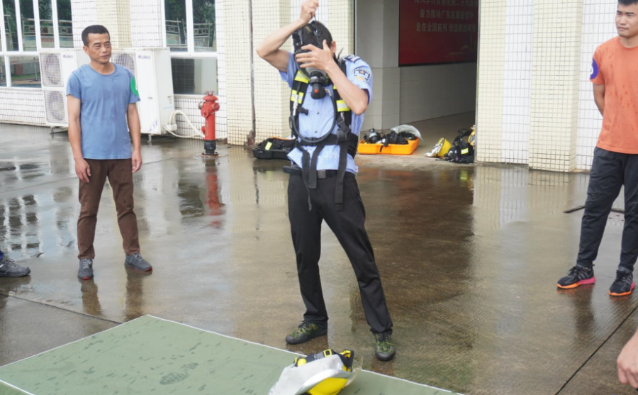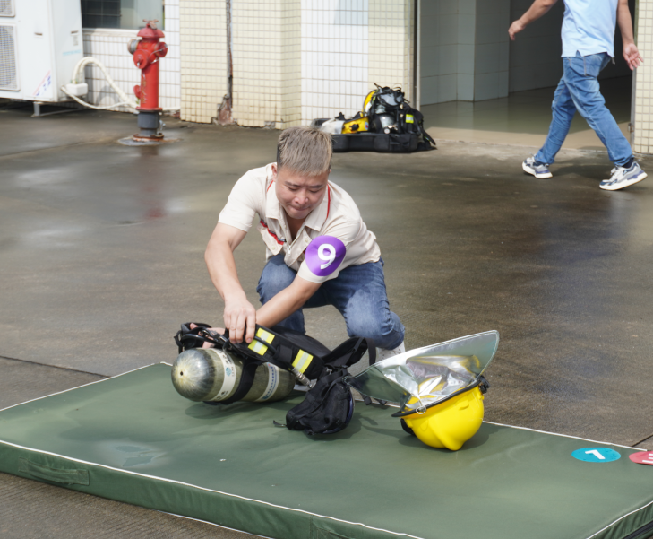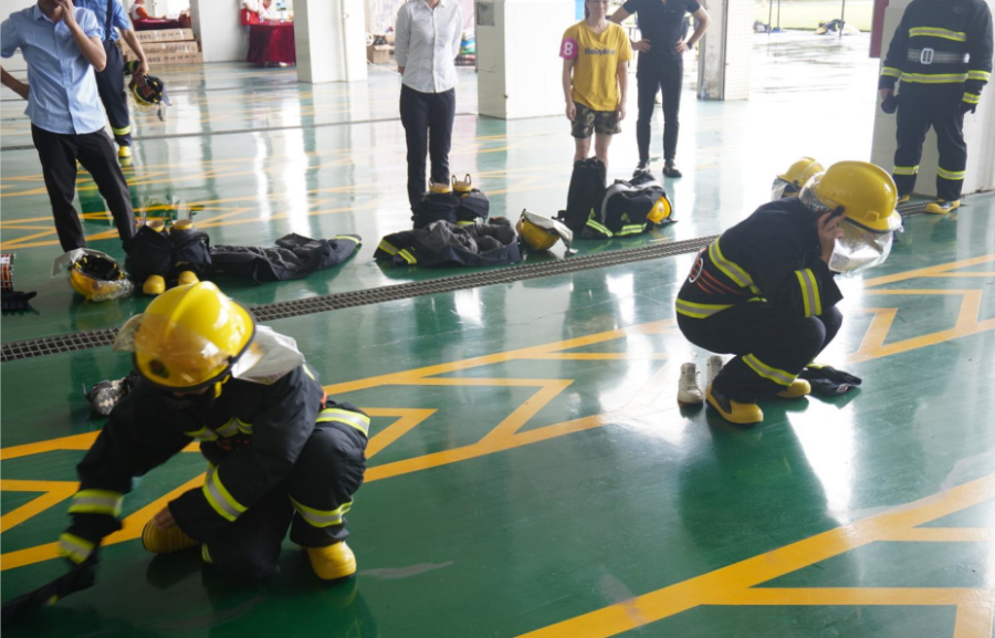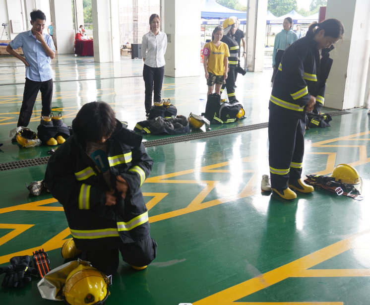 本次职工消防设施操作员职业技能竞赛包含理论考试与和5项实操考核(包括一人佩戴空气呼吸器30米折返跑、一人两盘水带连接、水带前水带延长操、干粉灭火器油池灭火操、原地穿着灭火战斗服)两大竞赛项目。