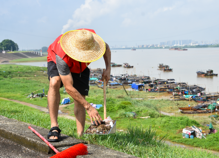 青年志愿者杨志芬表示:我经常报名参加志愿服务活动,今天天气虽然比较炎热,但和一群人一起呵护自然、拥抱自然,虽然有点累,但看到芦苞河堤更加干净美丽了,内心是无比自豪、高兴的。