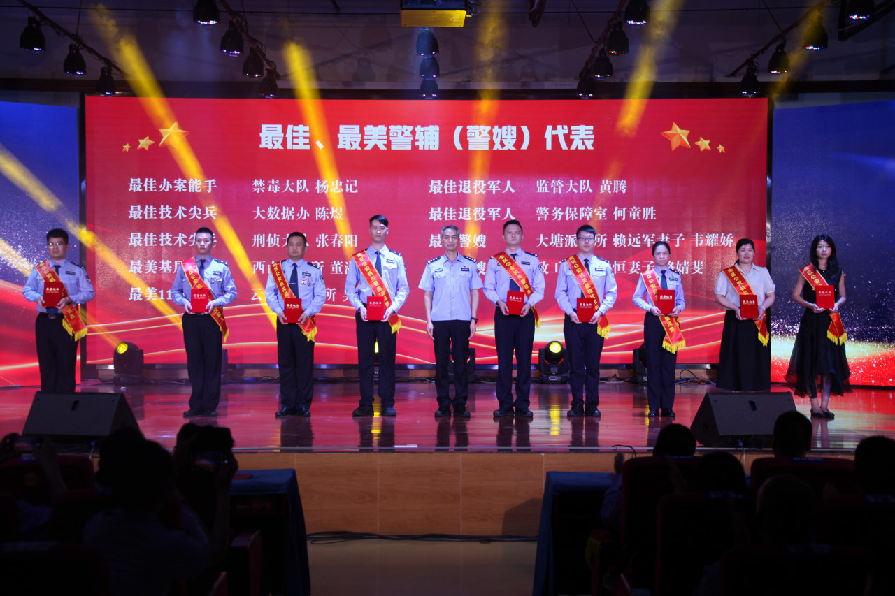 报告会上,副区长、公安分局党委书记、局长叶永辉,分局党委副书记、政委翟海殷分别为2023年上半年“最佳(美)警辅(警嫂)”代表及立功受奖集体、个人代表颁奖。