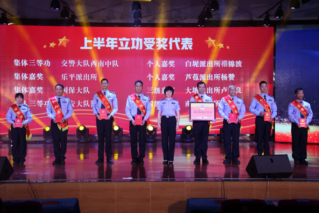 为庆祝中国共产党成立102周年,重温党的光辉历程,弘扬伟大建党精神,6月30日下午,佛山市公安局三水分局在云东海街道文化站举办“赞歌颂党恩,铁军护发展”庆七一主题报告会,副区长、公安分局党委书记、局长叶永辉出席活动并为功奖代表颁奖。