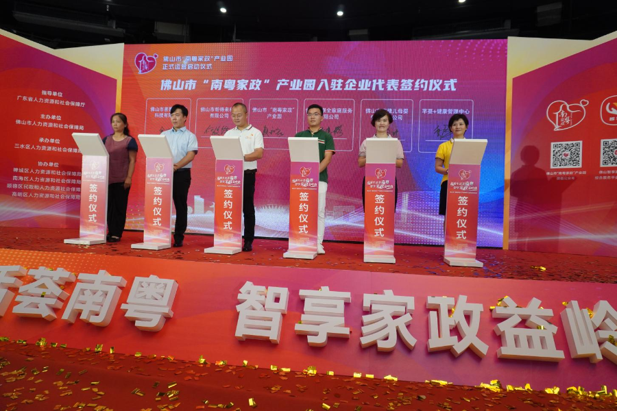 三水区委常委孙延驰在启动仪式致辞中表示,全市首个“南粤家政”产业园在三水落地,这是三水家政行业的大事、喜事,也是三水高标准推进“南粤家政”工程的标志性成果。目前,三水有家政企业103家、从业人员1504人,以广东力工集团等龙头企业为引领,创建了“三水区家庭服务业协会”,带领全区大大小小的家政机构共同发展。今后,三水将一如既往深耕家政产业,依托“南粤家政”产业园,打造“互联网+家政”服务新业态,完善家政服务管理标准化建设、推动家政人员评价体系建成,进一步夯实家政服务业发展基础。