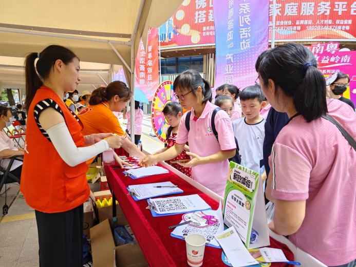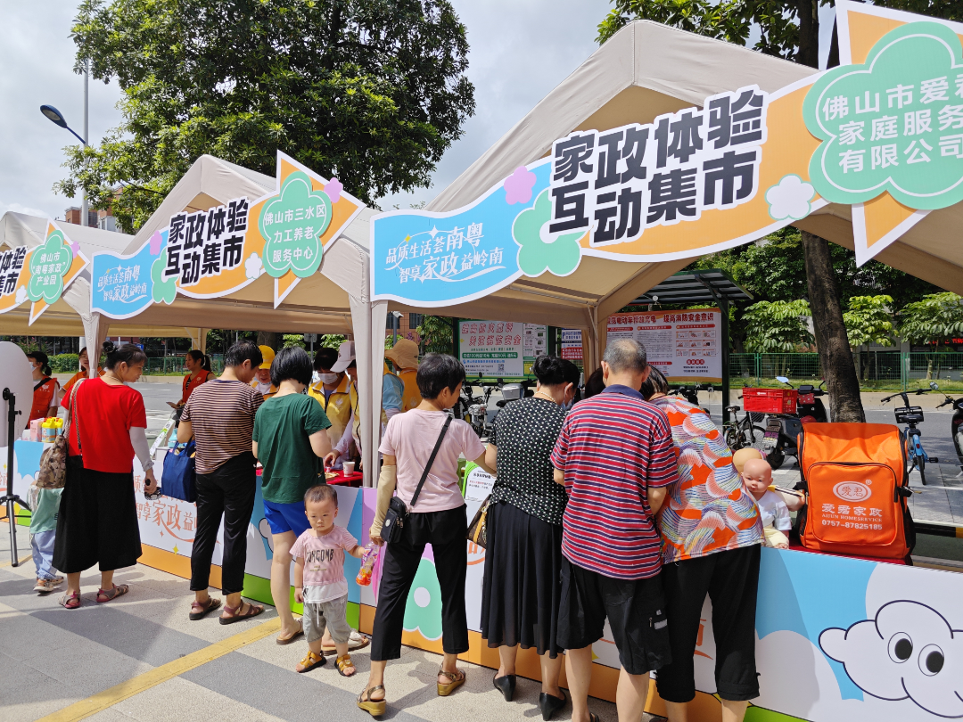 佛山市“南粤家政”产业园启动仪式进行的同时,家政体验互动市集的各个摊位在如火如荼地开展着