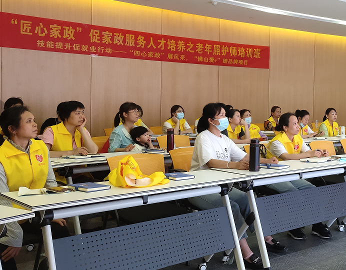 为提升佛山市家庭服务业养老服务人才的综合服务水平及专业技能,更好地促进佛山市养老服务业的高质量发展,解决家政企业、养老机构的用人用工需求,佛山市“南粤家政”产业园在佛山市三水区人力资源和社会保障局的指导下,开展“四心家政”展风采,“佛山爱+”铸品牌项目的“匠心家政”促家政服务人才培养项目的老年照护师培训班、认知症照护师培训班,培训各为期5天,共有60多名学员参与培训。此外,此次培训还特邀省级养老服务行业专家进行授课。