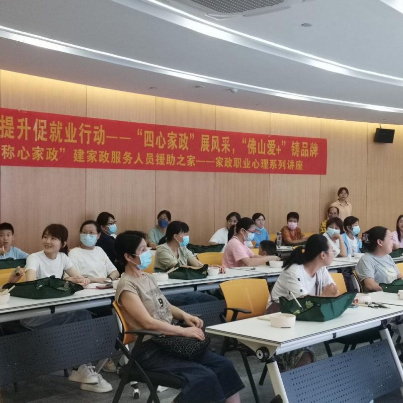 随着生活节奏不断加快,社会对家政服务的需求越来越强,从育养婴幼儿到照料老年人,从家务“小时工”到照料病人的护工,家政服务行业越来越受到大家的关注。在今年5月底,佛山市三水区人力资源和社会保障局开启了“技能提升促就业——‘四心家政’展风采,‘佛山爱+’铸品牌项目”,建立了“称心家政”建家政服务人员援助之家,旨在协助家政服务人员缓解压力,解决家政服务从业人员的心理问题。