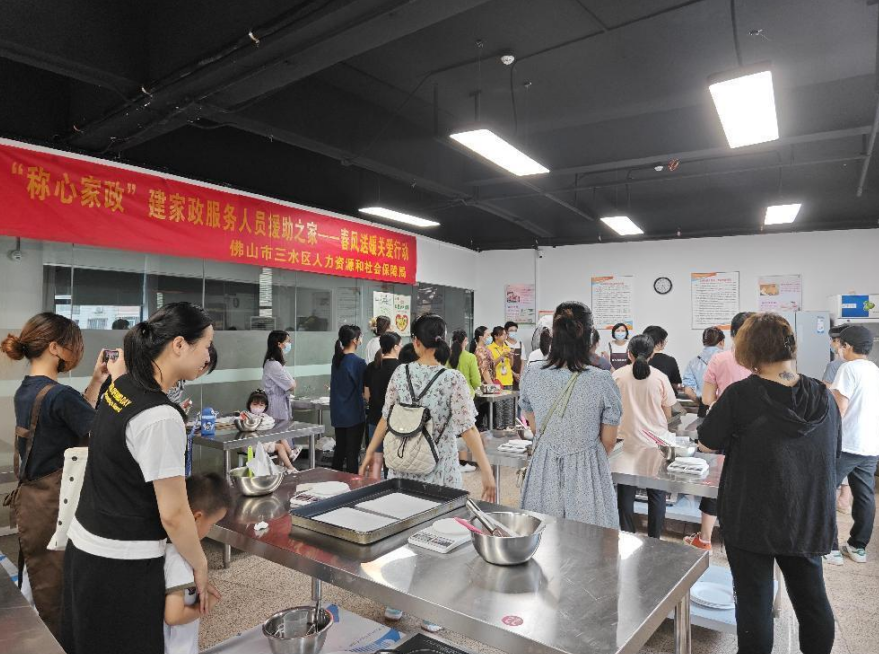 一次奇妙烘焙旅行,唤起家政服务人员的好奇心。2023年6月17日,在佛山市三水区人力资源和保障局的指导下,“称心家政”建家政服务人员援助之家春风送暖关爱行动系列活动之“烘焙滋味,‘焙’感幸福”美食制作课程活动在佛山市“南粤家政”产业园如期举行,活动吸引了25余名家政服务人员参加。本次课程,旨在丰富家政服务人员的兴趣爱好,提升家政服务人员的自我价值感和幸福感。