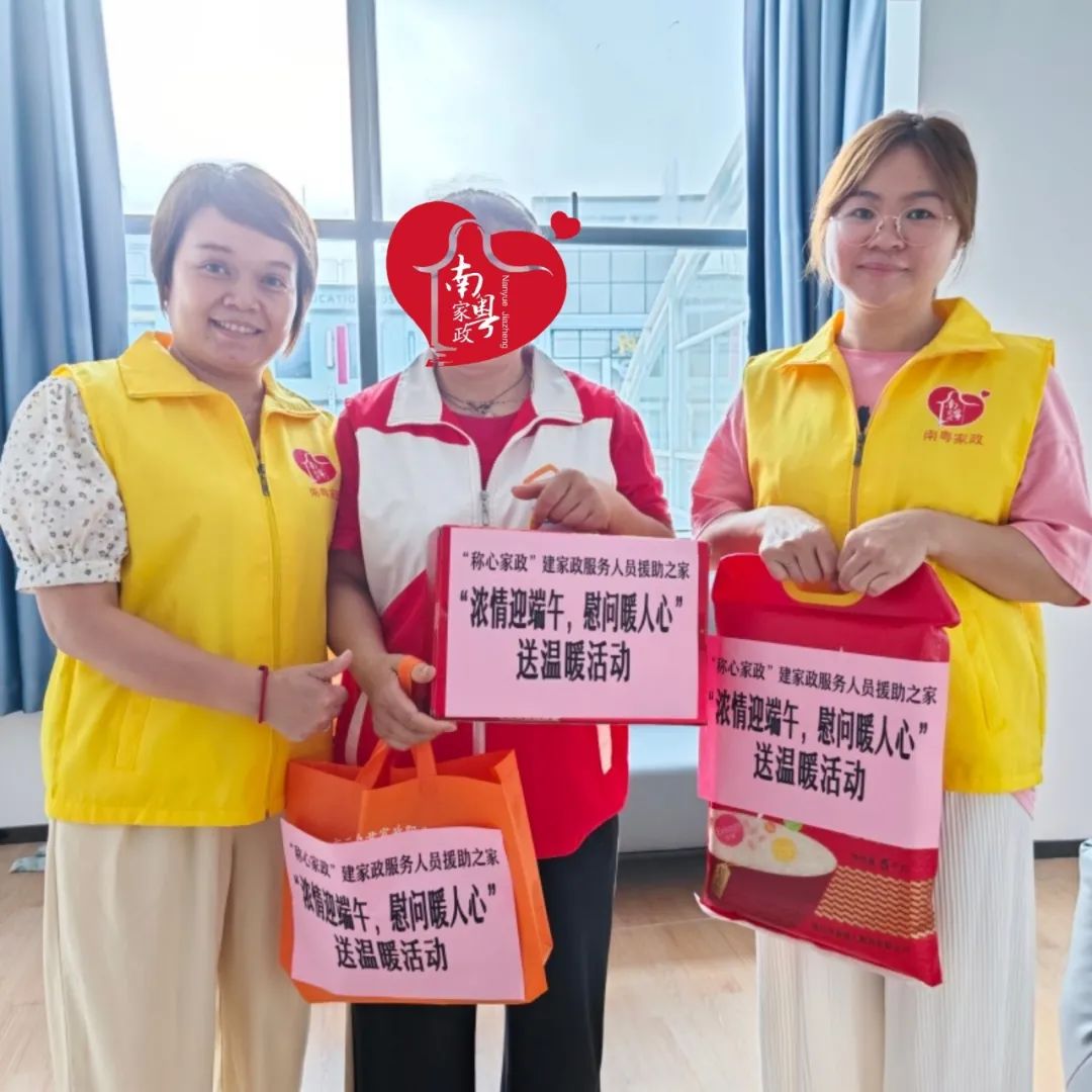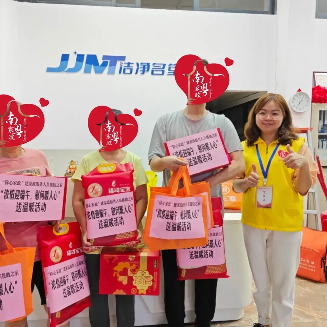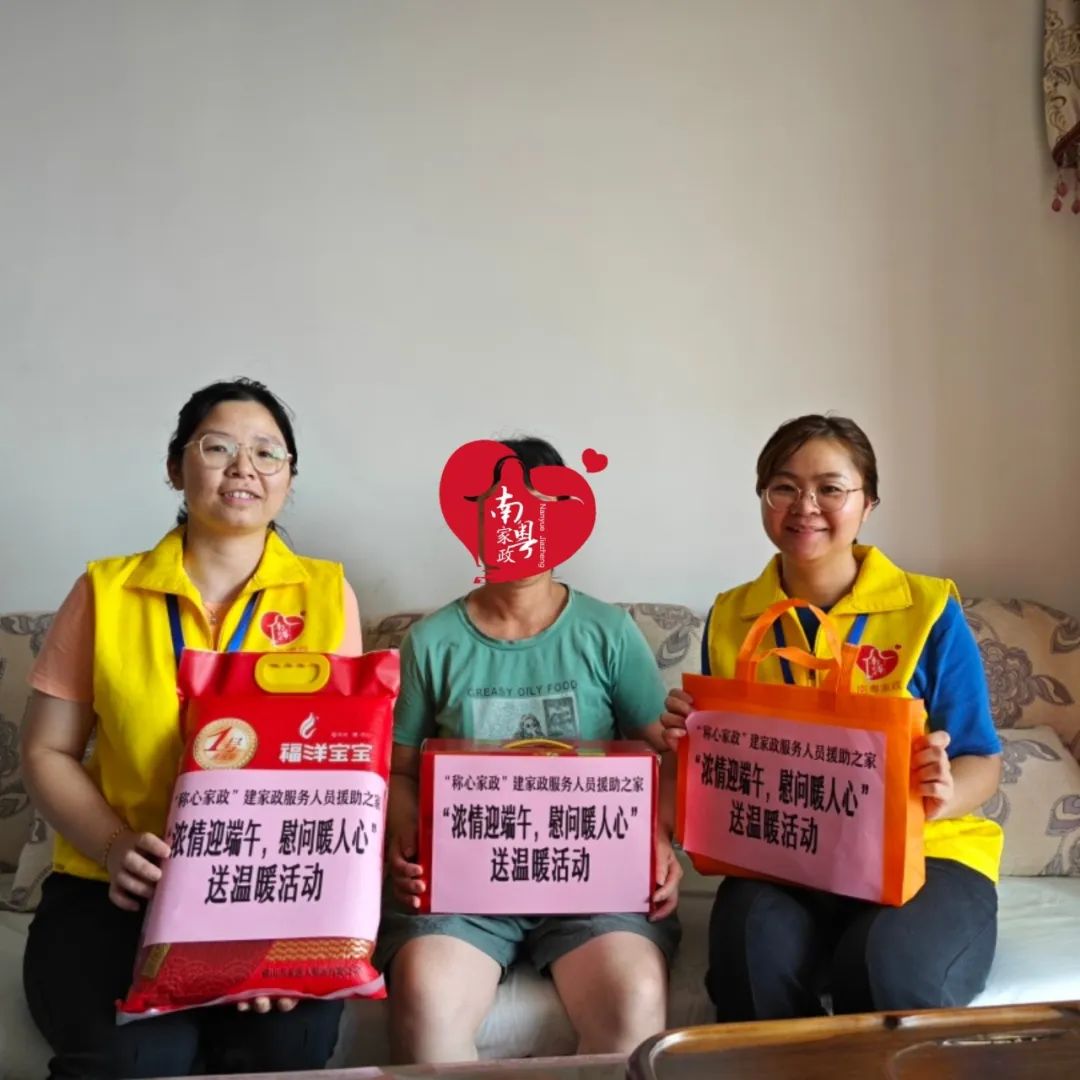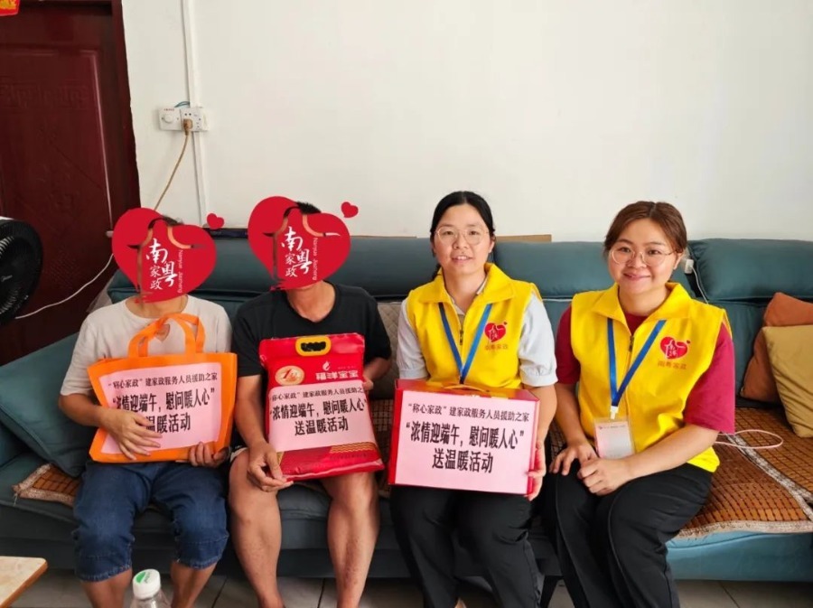 一年一度端午又至,每个家庭在这个节日包上粽子,祁平安,祝健康。在佛山市三水区人力资源和社会保障局的指导下,“四心家政”项目工作人员在端午前夕开展“称心家政”建家政服务人员援助之家“浓情迎端午,慰问暖人心”送温暖活动,分别到佛山市蜜糖儿母婴保健有限公司、佛山市爱君家庭服务有限公司、佛山市联全家政服务有限公司、佛山市有名堂清洁有限公司为20名家政服务人员送上端午节慰问礼品及节日关怀。
