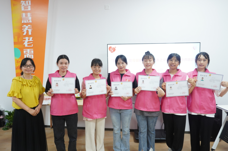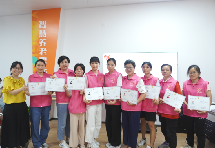 培训结束后,“四心家政”项目工作人员在佛山市“南粤家政”产业园里举行了一场简短而温馨的结业仪式。仪式上,授课老师黄老师为这为期5天的培训做了简短的培训总结,并殷切希望学员们能够学以致用,帮助到更多的婴幼儿。仪式的最后黄老师和“匠心家政”项目负责人林老师为班级的优秀学员和结业学员颁发奖牌和结业证书。至此,“匠心家政”母婴服务人才培养之早期教育指导师培训的第一期培训班圆满结束。
