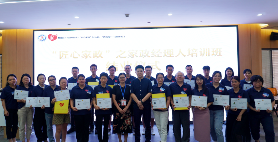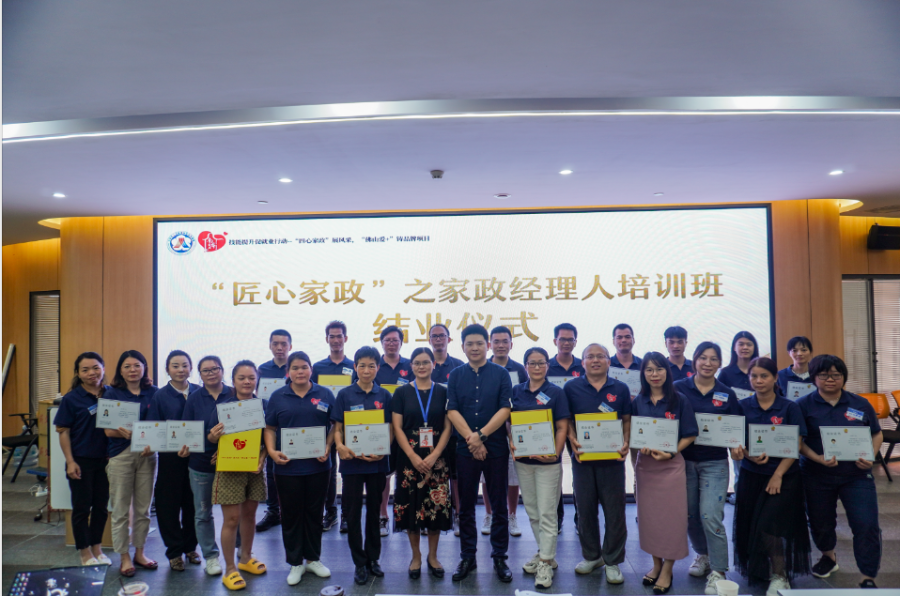 随着社会经济的不断发展,对家政服务业从业人员的需求更加旺盛。为加强家政行业人才队伍建设,推动技能人才存量、增量双提升,促进家政服务提质扩容,助推家庭服务业实现高质量发展。佛山市三水区人力资源和社会保障局主办,广东力工集团有限公司承办的“匠心家政”促家政服务人才培养第一期家政经理人培训班于7月25日圆满结束。