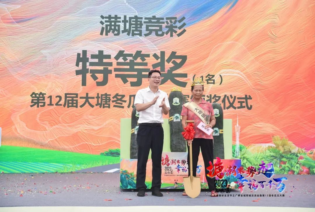塘潮乘势起,幸福百千万--2023年大塘美好生活节之广佛全域同城交流会暨第12届冬瓜王大赛,7月30日上午正式开幕,由永平村委的梁趣莲种植的冬瓜,以86.8斤,夺得第12届冬瓜王桂冠!