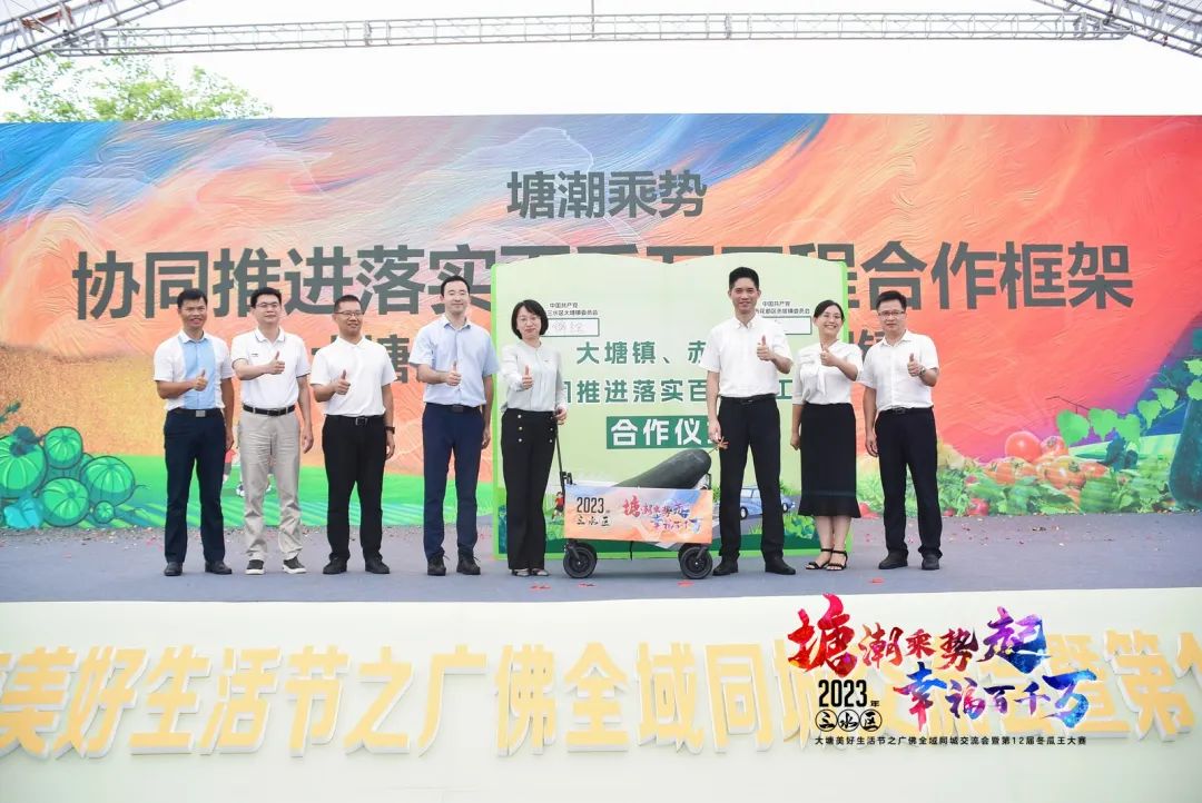 “塘潮乘势起 幸福百千万”,2023年大塘美好生活节之广佛全域同城交流会暨第12届冬瓜王大赛期间,举行了多个项目的签约仪式,为大塘农业发展提供新动力。